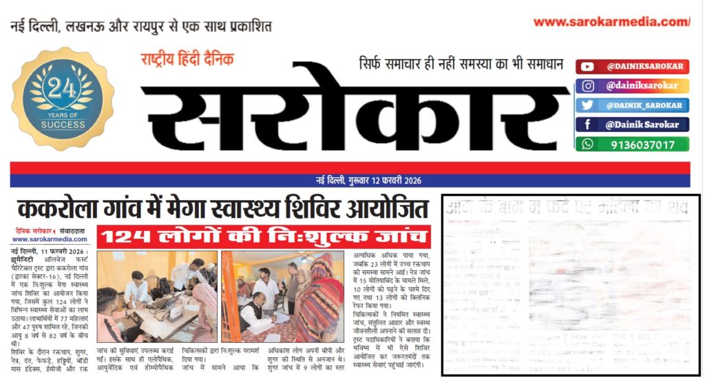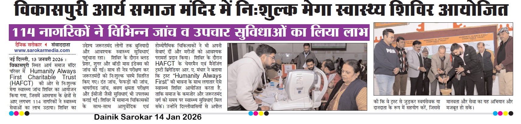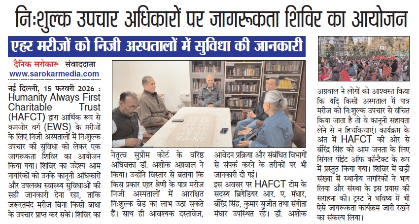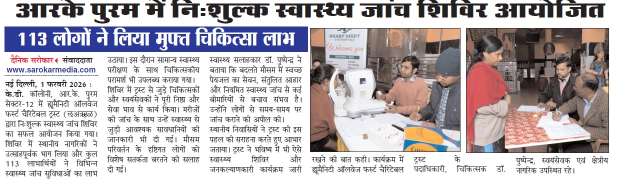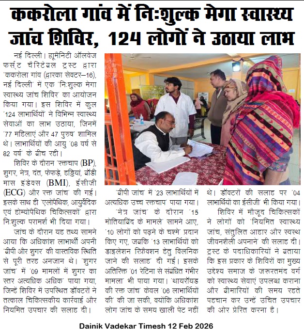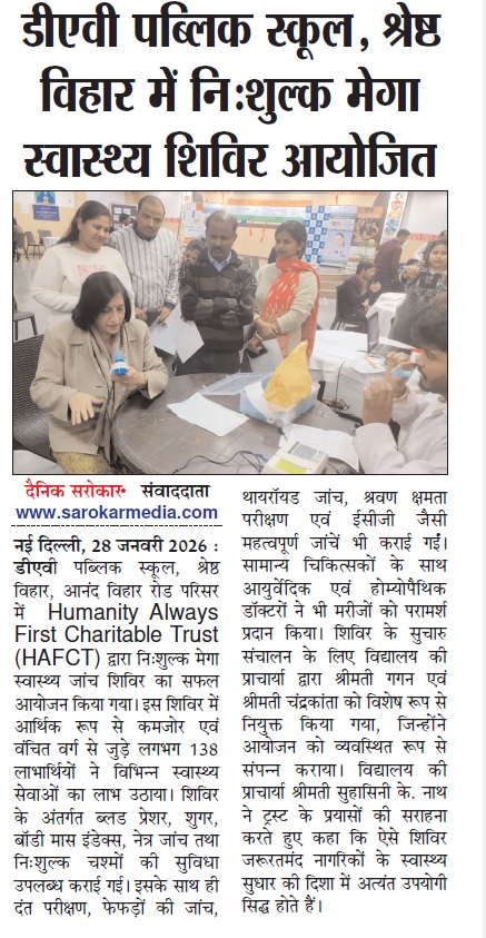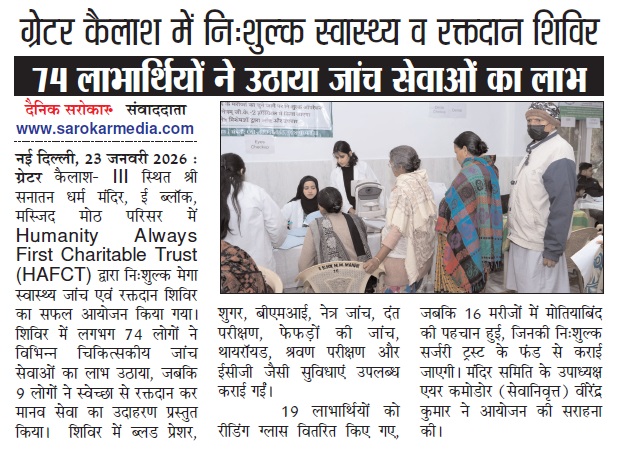 Humanity Always First in Media Coverage Blood Donation Camp News Blood Donation Camp News Danik Vaidekar News 08 Dec 2025 News Coverage of Health Camp dated 14 Dec 2025 HAFCT in media on 01 Jan 2026 News Paper HAFCT in News Coverage Dainik Vadekar Times 14 Jan 2026 HAFCT in News Coverage Dainik Sarokar 14 Jan 2026 HAFCT 18 Jan 2026 Medical Camp Dainik Sarokar News HAFCT Mega Health Camp News Coverage by Dainik Sarokar News Coverage of Health Camp News Coverage of Health Camp at Kakrola Village Awarness Camp on 14 Feb 2026 Dainik Vadekar 12 Feb 2026 Daink Vadekar Times 17-02-2026