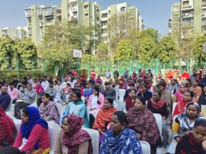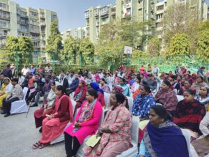 Awareness talk for all the workers (EWS / underprivileged) of the 3 – slum clusters of RK Puram – KD Colony (sector 12), Ambedkar Basti (sector – 1), Ekta Vihar (sector – 7). The talk was held at the Basketball Court of Som Vihar Appts located at sector – 10, RK Puram.