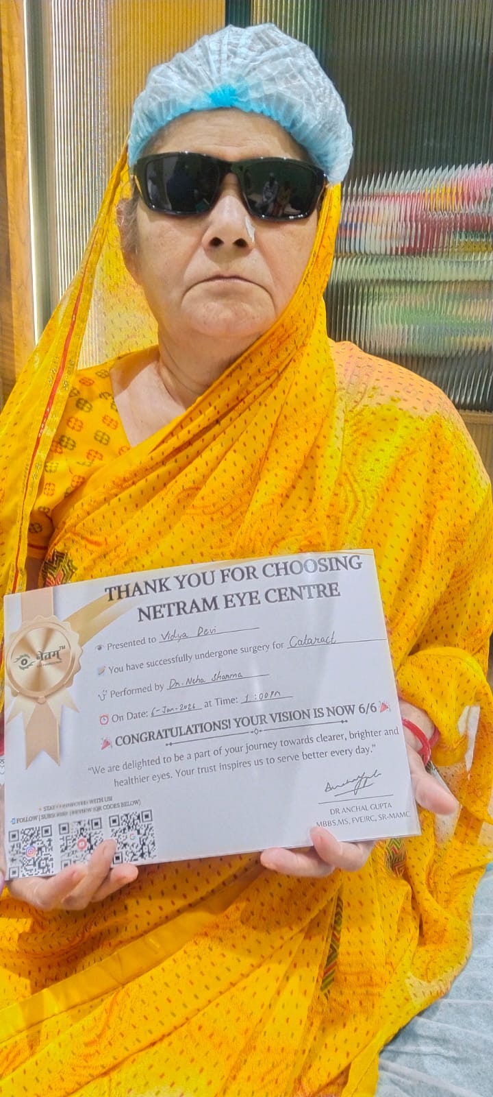 The surgeries have been successful and what made this truly special was the seamless process provided by both the Eye Hospitals for a hassle-free experience. The Counsellor, facilitated the follow-up with calls & documentation in an easy manner for an early date of surgery without any waiting. A one-week recovery period was given to all the patients. Their post-operation check-up has also been carried out successfully and dates for second eye cataract surgery is being planned suitably.